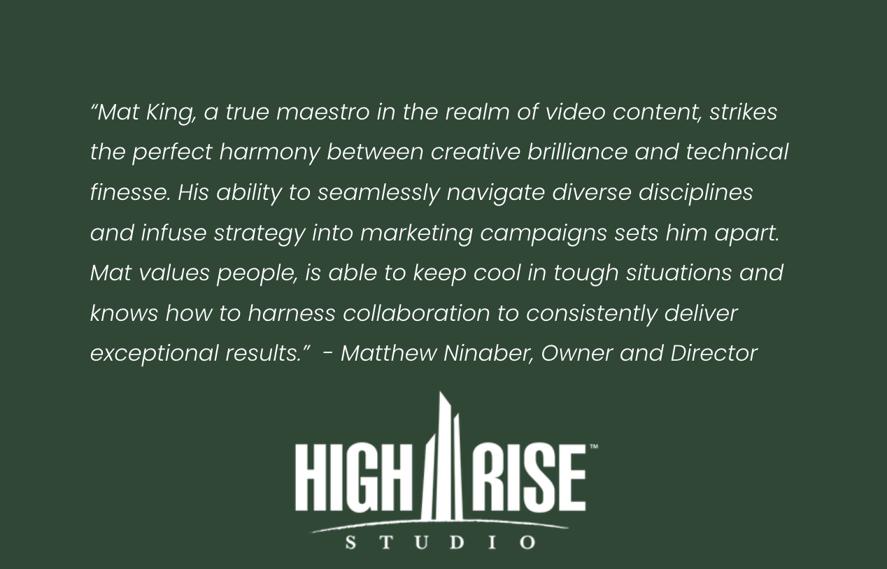 My depth of experience as an empowering leader has allowed me to be at the centre of executing upon skillful and effective video strategies across a wide array of industries. Whether I am on-location for a production, collaborating with colleagues and executives, or teaching the next generation of creatives, I aim to ensure that all members involved enjoy the process from start to finish.